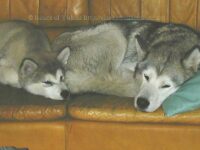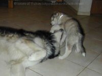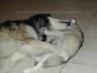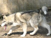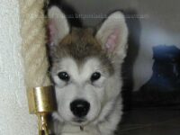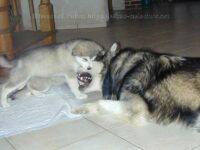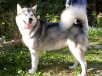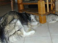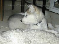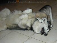 Sie arbeitet gerne im Gespann, kann aber auch sonst allerlei Kunststücke, sie apportiert z.B., trägt ihren Futternapf durch die