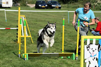 der Malamute mag alles gerne, nicht nur am Schlitten oder Trainingswagen arbeiten, auch Agility macht Spass!