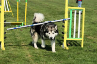 Der Alaskan Malamute ist aber nicht nur ein Lastenzieher, sondern kann bei konsequenter liebevoller Erziehung auch in Agility eingesetzt werden.