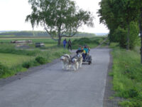 Jetzt gibt es aber auch die Möglichkeit, einen Trainingswagen zu benutzen. Sie können davon ausgehen, daß ihr Züchter seine Hunde bewegt und sicher dürfen Sie versuchen, Ihre Hunde einmal am Wagen des Züchters laufen zu lassen, um festzustellen, ob sie an dieser Art der Bewegung Spass haben. Ein guter Trainingswagen kostet ca. 1500 Euro, die Anschaffung sollte also gut überlegt sein.