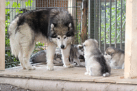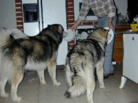 Er ist sehr konsequent mit seinen Rudelmitgliedern und er ist ein absolut toller Vater und "Ersatzvater". Er zieht alle unsere Welpen groß, sie durchlaufen eine strenge Schule, aber andererseits würgt er ihnen sein Futter vor und lässt sie im gebührenden Abstand herumtollen. Nach der Fütterung "seiner" Kinder, seine Natur zwingt ihn dazu, schaut er mich immer ziemlich verzweifelt an, in der Hoffnung einen Nachschlag zu bekommen, welchen er natürlich auch bekommt 😉