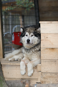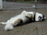 Er war der, der alles fest im Griff hatte. Der an den Gehegen für Ordnung unter den rivalisierenden Damen sorgte, indem er ihnen klar machte, dass ALLES SEINS war. Der den Rüden vermittelte, dass nur er GOTT war und alle unter ihm standen. Der das Rudel führte, im Gespann im Lead lief, seine Menschen abgöttisch liebte, an der Leine am kleinen Finger lief, auch frei lief, auf Wort hörte und Druck nach unten abgab. Der den Welpen das Futter vorwürgte und sie liebevoll aber streng erzog. Alle Welpen die durch seine "Hände" gingen, waren supergut sozialisiert und kannten ihren Platz.
