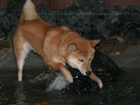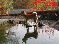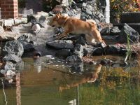 Kuri Mu hat viel Spass am Spiel. Er mag sogar den Teich 🙂