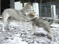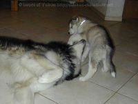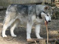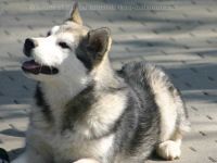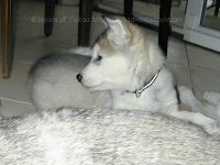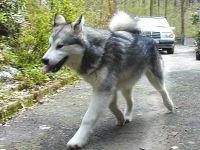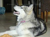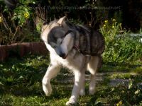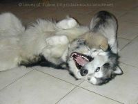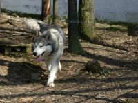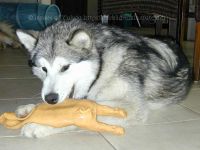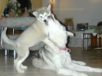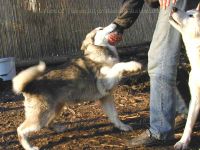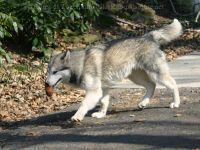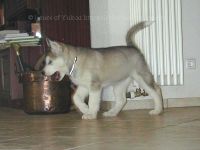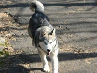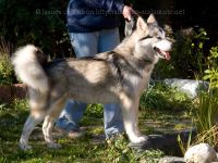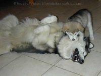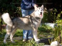 Sie arbeitet gerne im Gespann, kann aber auch sonst allerlei Kunststücke, sie apportiert z.B., trägt ihren Futternapf durch die